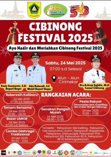 Delik28 – Kecamatan Cibinong Kabupaten Bogor menggelar Cibinong Festival 2025 sebagai rangkaian kegiatan dan memeriahkan Hari Jadi Bogor (HJB) ke-543 dengan berbagai acara seperti festival budaya khas Daerah Jabar yang digelar di Kelurahan Cirimekar, Sabtu (24/5).