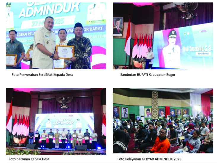Sebagai salah satu perwujudan Visi Misi daerah serta rangkaian peringatan hari jadi Bogor ke 543, Maka Dinas Kependudukan dan Pencatatan Sipil menyelenggarakan Gebyar Adminduk 2025, penyelenggaraan acara ini dilaksanakan pada hari selasa, tanggal 27 Mei 2025, bertempat di Gedung Tegar Beriman, Kecamatan Cibinong, Kabupaten Bogor. Ada beberapa Launching dan Peresmian Layanan yaitu :